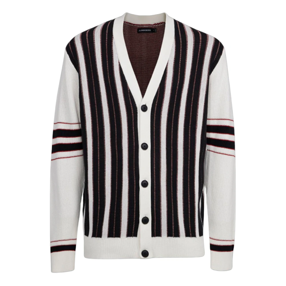 Tilfør et vintagepreg til ditt antrekk med Cairo Cardigan. Denne cardiganen med tykk strikk har boxy passform, dyp V-hals og et iøynefallende stripemønster. Vi synes den ser best ut stylet over en ensfarget T-skjorte kombinert med en jeans med løs passform. V-hals Knepping foran Vertikal, ribbet knappeliste Ribb i mansjettene og falden Boxy passform 100% Økologisk bomull